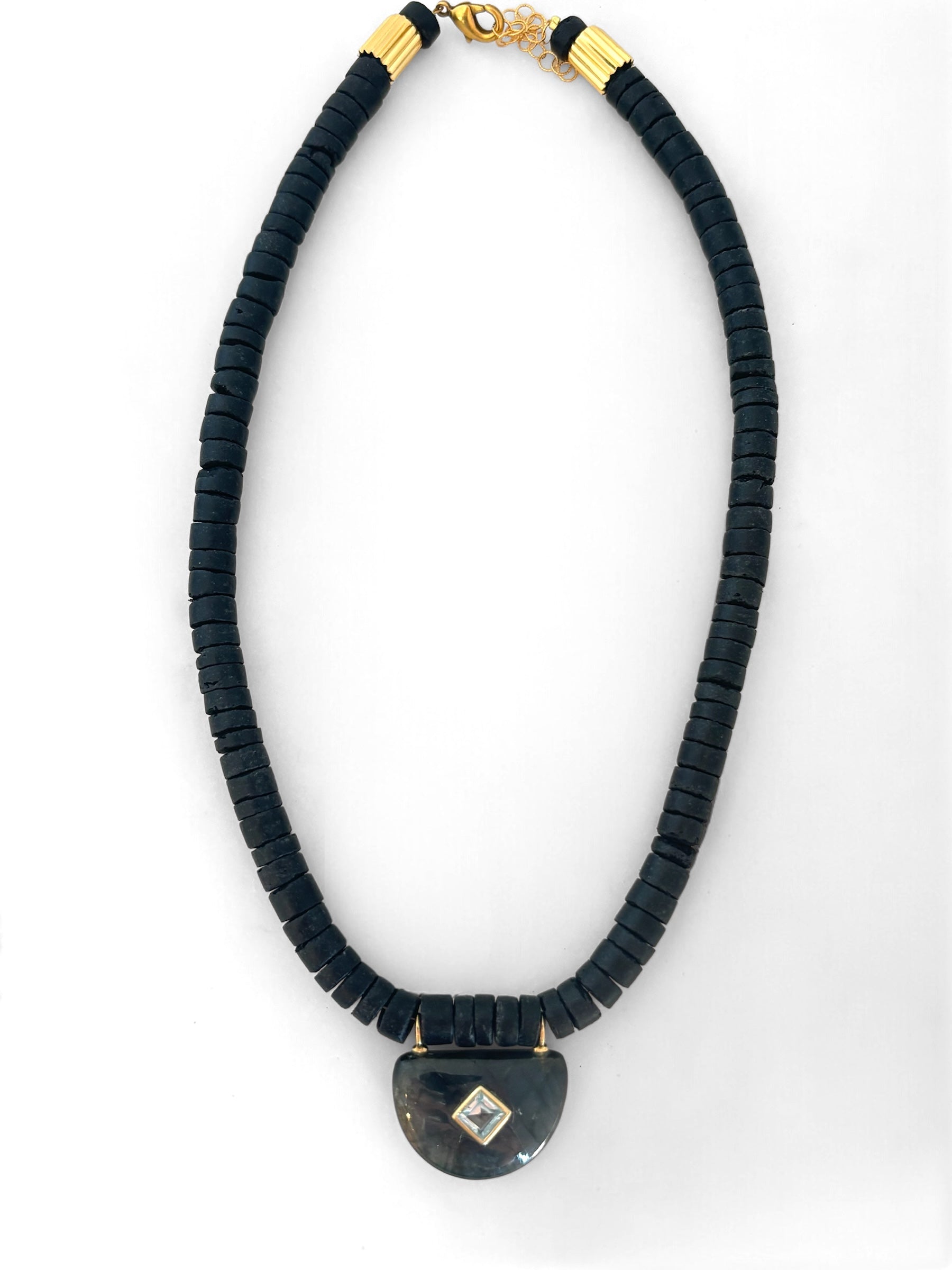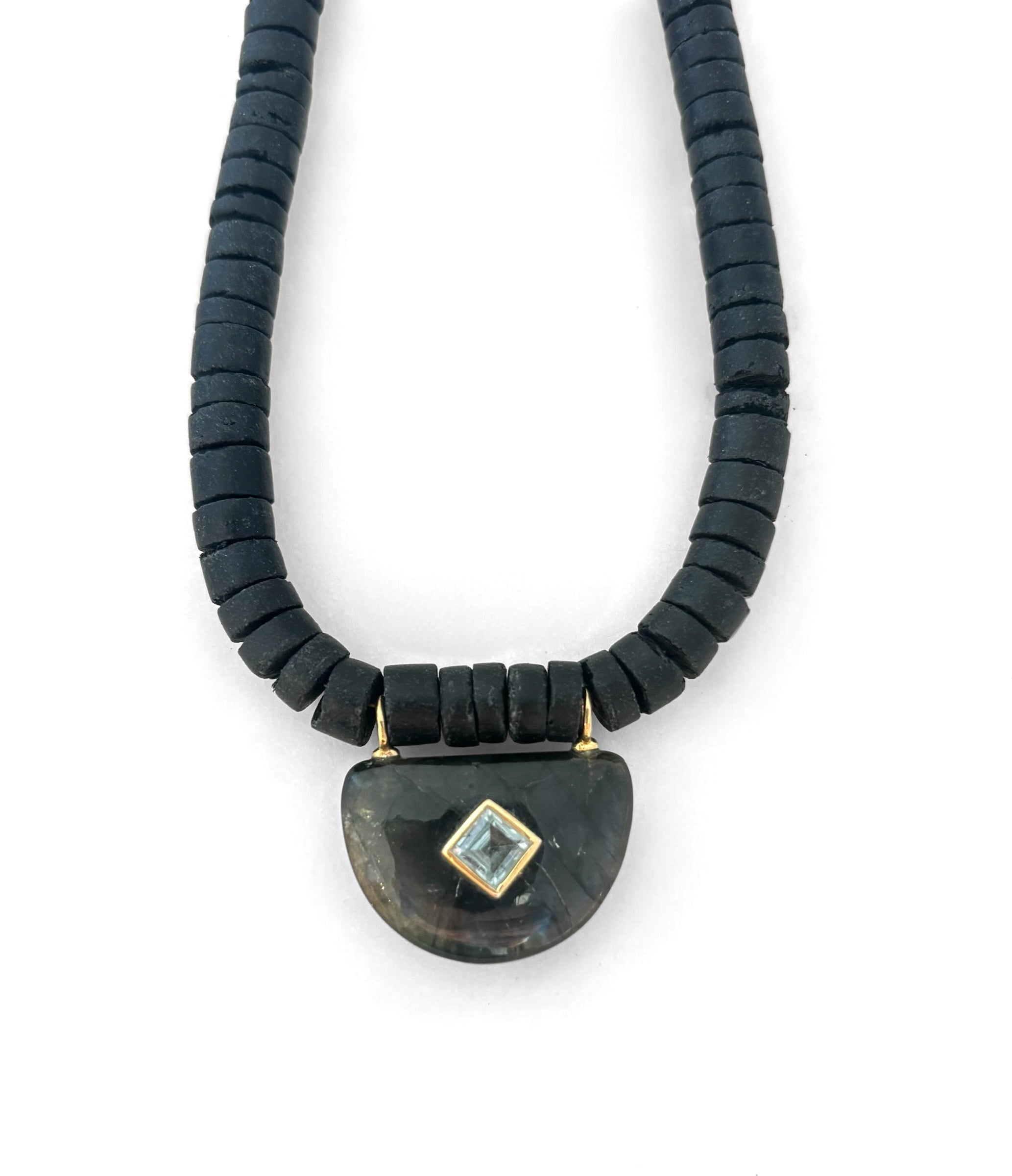 Black coco beads, labradorite